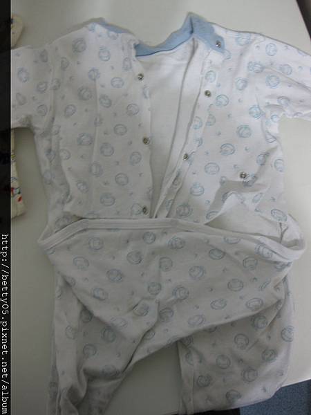 來裡後,找到這種很適合"止癢"的衣服。因為這衣服的設計是在背後開扣的連身裝,所以就不怕手伸進洞裡面抓養。EZRA很會脫手套也很會把手伸進衣服開扣的洞裡面抓養,所以有了這種背後開扣的衣服,EZRA也漸漸不抓了。同時我也覺得,這種衣服的設計很保暖,因為洞在背後,所以肚子也比較不會受涼。